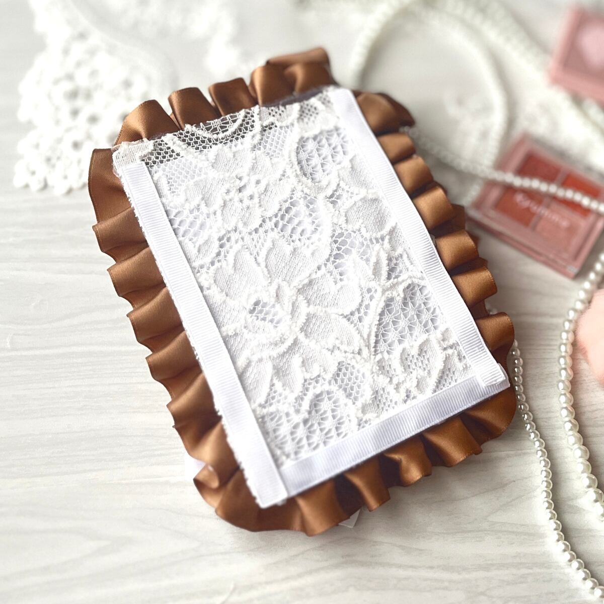 【訳あり アウトレット お試し価格】B7サイズ 硬質ケースデコ(茶色リボン×白レース×クリアビジュー)推し活ブロマイドケース